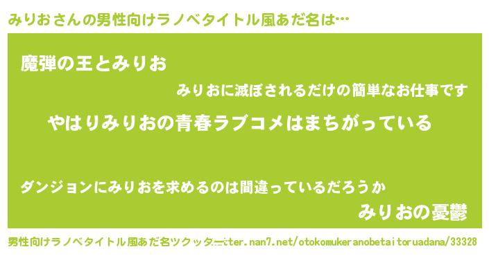 | 意味不明あだ名 | 『みりおフォーエバー』『ペロリンみりお』 |