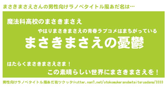 | 胡散臭い通販商品みたいなあだ名 | 『モテモテ間違いなし霊験あらたかなお札…その名も「まさきまさえ」』 |