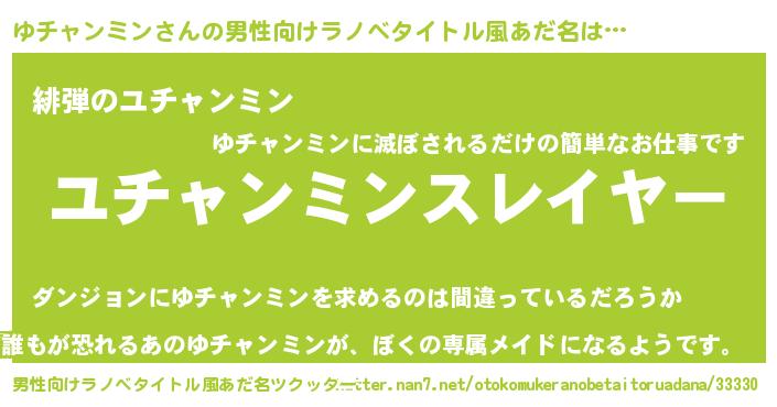 | 胡散臭い通販商品みたいなあだ名 | 『絶対に幸福をもたらす水素水…その名も「ゆチャンミン」』 |