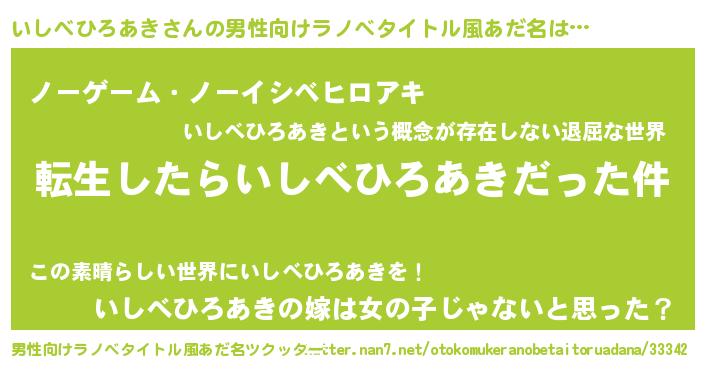 | ヘコむあだ名 | 『いしを』『いしべひろあき(苦笑)』 |
