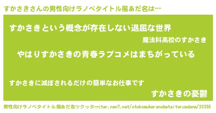 | 女子向けラノベタイトル風あだ名 | 『すかさきの雑貨屋さん』 |