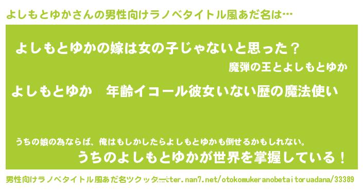 | 伝説のあだ名 | 『覚醒した魔法使いよしもとゆか』 |