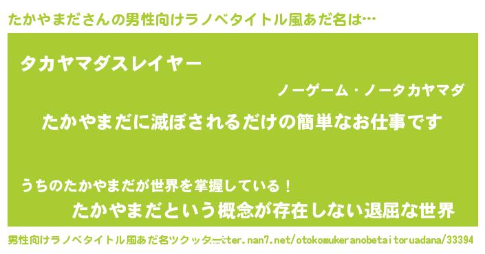 | ヘコむあだ名 | 『たかやまだ(苦笑)』『牛乳』 |