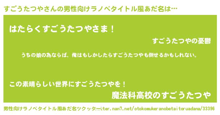 | 女子向けラノベタイトル風あだ名 | 『すごうたつやの婚約者』 |