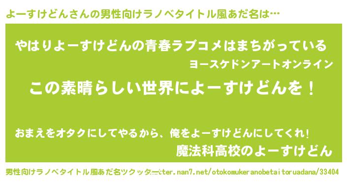 | 女子向けラノベタイトル風あだ名 | 『悪役よーすけどんに転生したようですが、知った事ではありません』 |