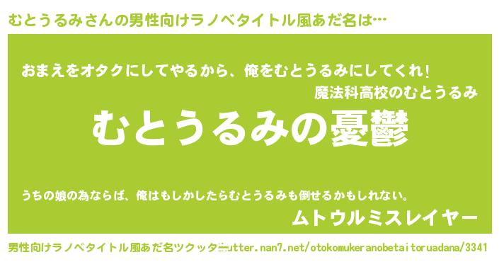 | 女子向けラノベタイトル風あだ名 | 『(仮)むとうるみのやんごとなき事情』 |