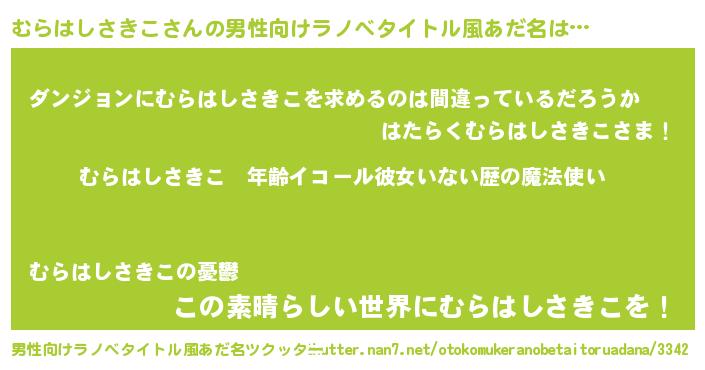 | 女子向けラノベタイトル風あだ名 | 『むらはしさきこの玉の輿計画!』 |