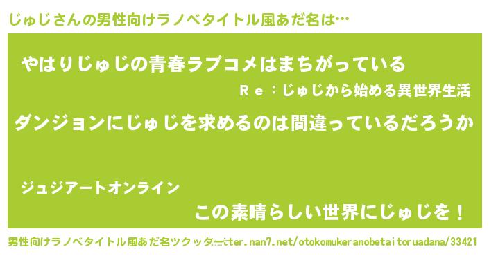 | 意味不明あだ名 | 『とにかく怪しいじゅじ』『自称じゅじ』 |