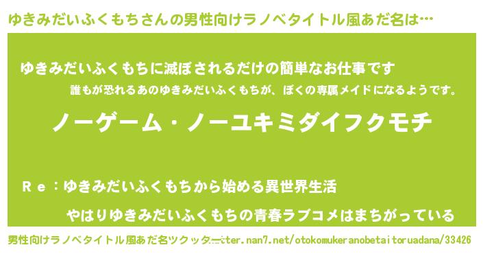 | 女子向けラノベタイトル風あだ名 | 『死神ゆきみだいふくもちの再婚』 |