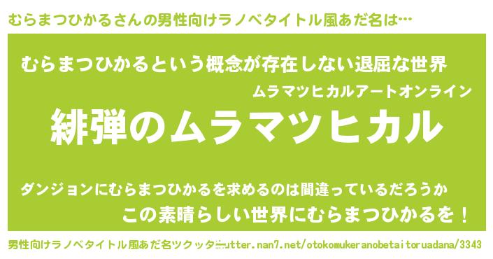 | 胡散臭い通販商品みたいなあだ名 | 『絶対に幸福をもたらす健康食品…その名も「むらまつひかる」』 |