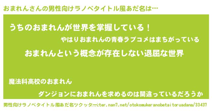 | 女子向けラノベタイトル風あだ名 | 『異世界で失敗しない100のおまれん』 |