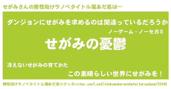 | 女子向けラノベタイトル風あだ名 | 『(仮)せがみのやんごとなき事情』 |