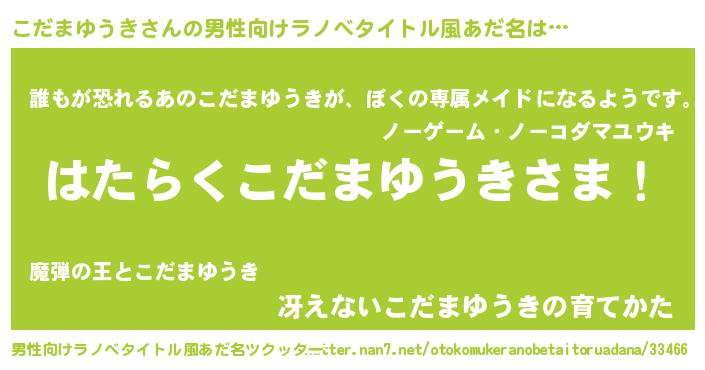 | 胡散臭い通販商品みたいなあだ名 | 『絶対に幸福をもたらす健康食品…その名も「こだまゆうき」』 |