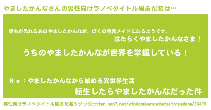 | 女子向けラノベタイトル風あだ名 | 『男装やましたかんなの憂鬱な任務』 |