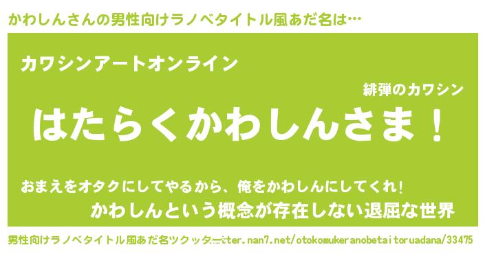 | 胡散臭い通販商品みたいなあだ名 | 『必ず成功する霊験あらたかなお札…その名も「かわしん」』 |