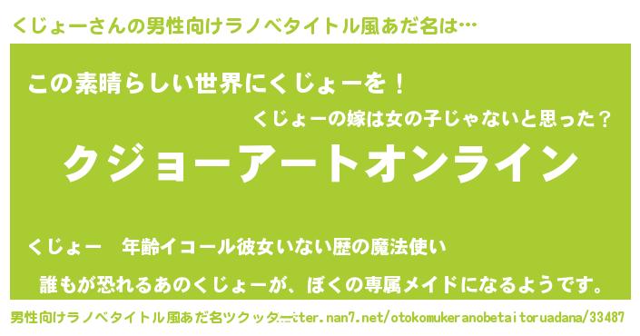 くじょーさんの男性向けラノベタイトル風あだ名をツクッター!