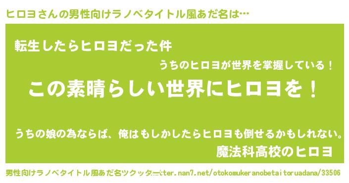 | ヒーロー風カッコイイあだ名 | 『仮面ヒロダー』『サイバー戦士ヒロヨ』 |