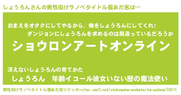 | 女子向けラノベタイトル風あだ名 | 『しょうろん姫と円卓の騎士』 |