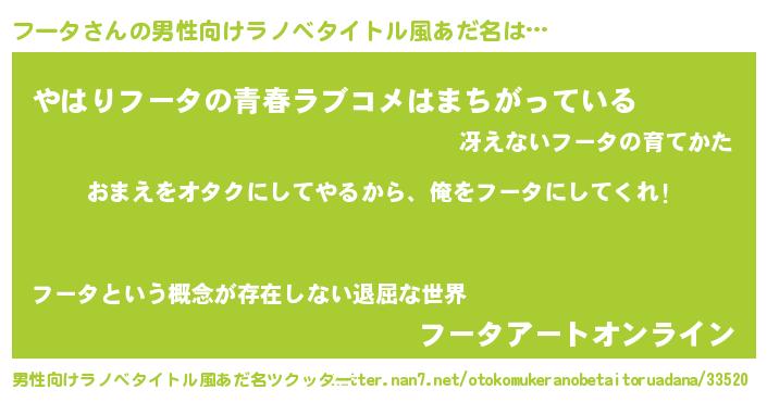 | ヘコむあだ名 | 『豆乳』『フーふぇ~』『フータ(笑)』 |