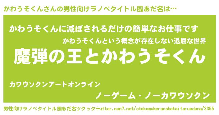 | 女子向けラノベタイトル風あだ名 | 『乙女ゲームの破滅フラグしかない悪役かわうそくんに転生してしまった…』 |