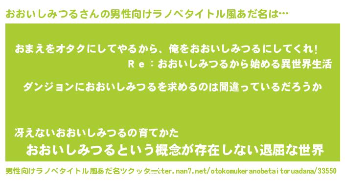 | 胡散臭い通販商品みたいなあだ名 | 『信頼と実績のペンダント…その名も「おおいしみつる」』 |
