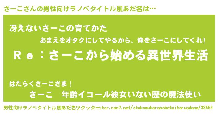 | 女子向けラノベタイトル風あだ名 | 『闇のさーこ』『さーこの玉の輿計画!』 |