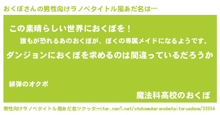 おくぼさんの男性向けラノベタイトル風あだ名をツクッター!