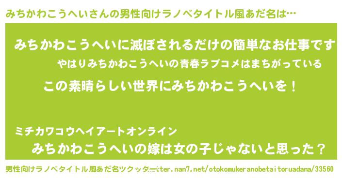| 胡散臭い通販商品みたいなあだ名 | 『あなたにだけ特別に提供する世界で10本だけ現存している希少なブランデー…その名も「みちかわこうへい」』 |