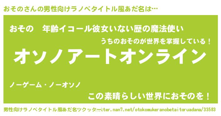 | 胡散臭い通販商品みたいなあだ名 | 『億万長者になれるブレスレット…その名も「おその」』 |