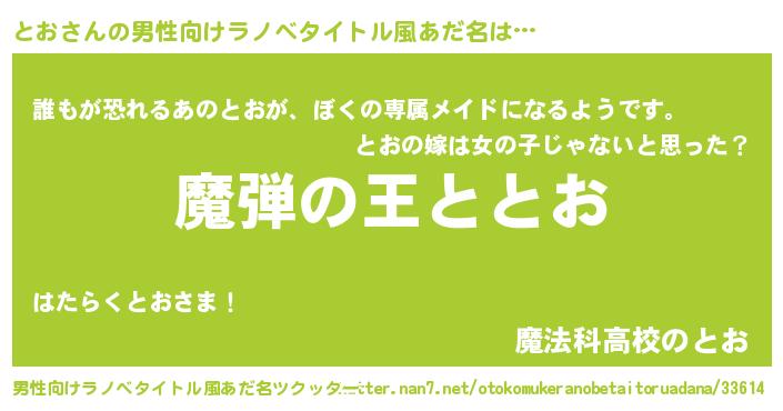 | ヘコむあだ名 | 『とお(爆)』『とおっちょ』『豆乳』 |