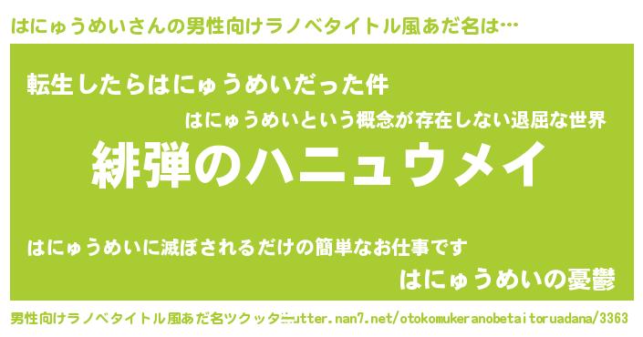 | ヘコむあだ名 | 『はににー』『はにゅうめい(小並感)』 |