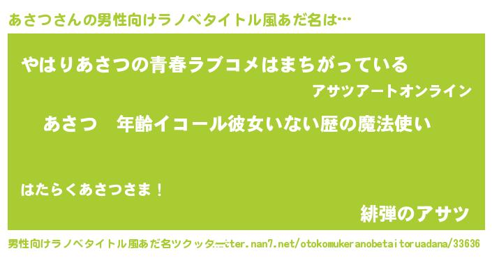 | 女子向けラノベタイトル風あだ名 | 『あさつの玉の輿計画!』 |