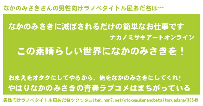 | 意味不明あだ名 | 『住所不定無職なかのみさき(3歳)』 |