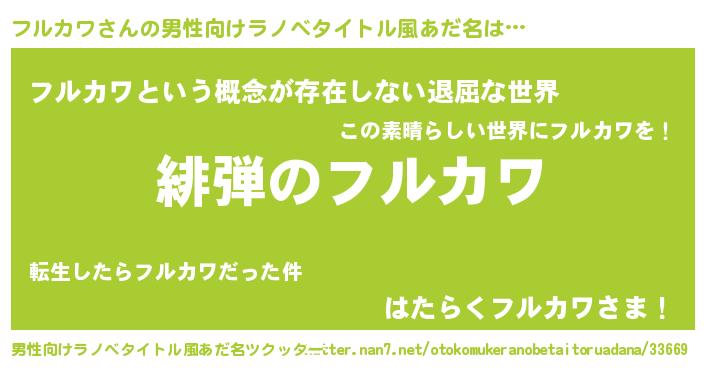 | ヒーロー風カッコイイあだ名 | 『ネオフルカワ』『仮面フルダー』 |