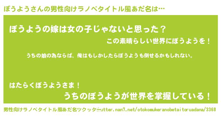 | 女子向けラノベタイトル風あだ名 | 『ぼうよう伯爵の花嫁』 |