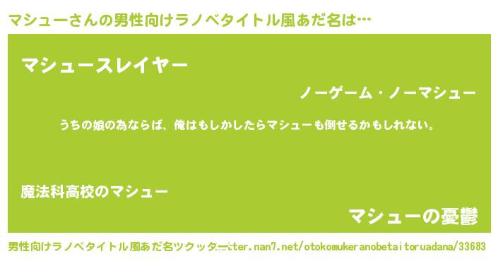 | ファンタジー風あだ名 | 『エターナルマシューー』『マシフェル』 |