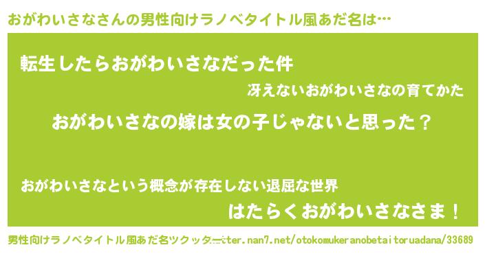 | 女子向けラノベタイトル風あだ名 | 『おがわいさな様がみてる』 |