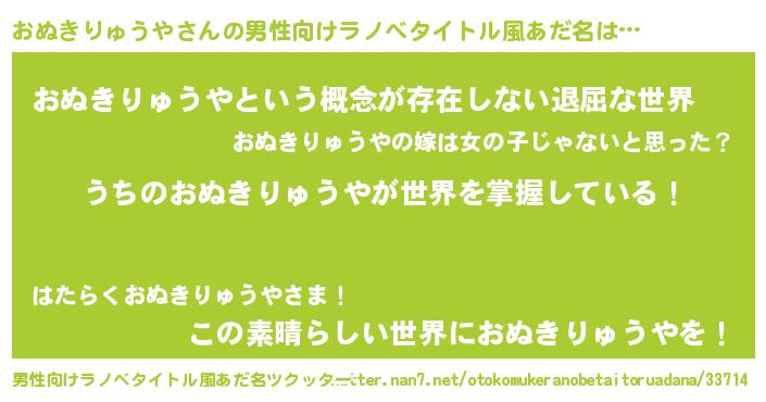 | ヘコむあだ名 | 『おぬきりゅうや(笑)』『おぬを』 |