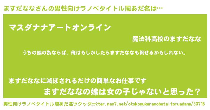 | ファンタジー風あだ名 | 『エターナルマスダナナー』『マスフェル』 |