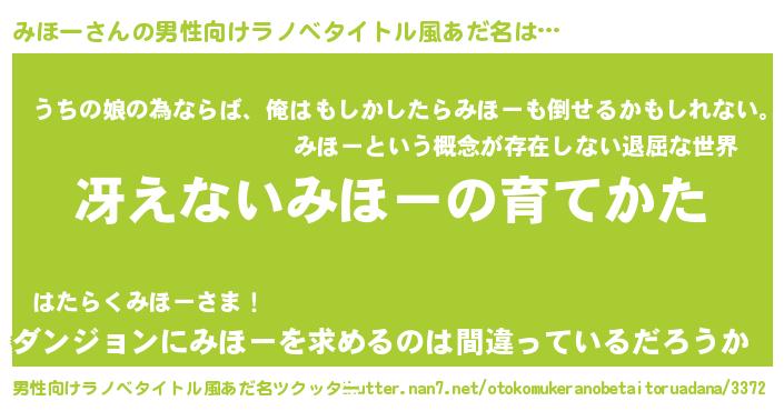 | 女子向けラノベタイトル風あだ名 | 『シンデレラみほー家の靴箱館』 |