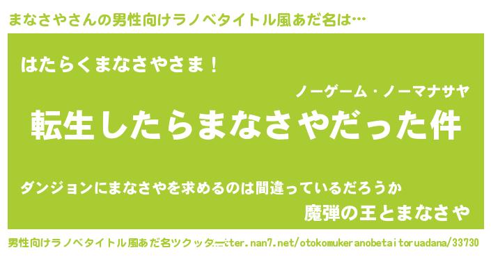 | 肩書あだ名 | 『まなさや大尉』『まなさやディレクター』 |