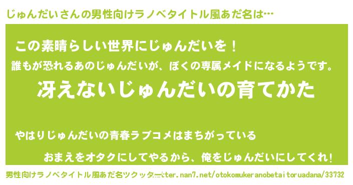 | ヘコむあだ名 | 『じゅんだい(震え声)』『牛乳』 |