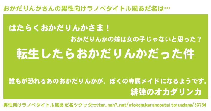 | 女子向けラノベタイトル風あだ名 | 『おかだりんかの玉の輿計画!』 |
