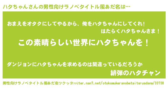 | 女子向けラノベタイトル風あだ名 | 『悪役ハタちゃんに転生したようですが、知った事ではありません』 |