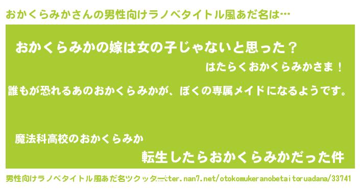 | 女子向けラノベタイトル風あだ名 | 『おかくらみかの契約王妃』 |