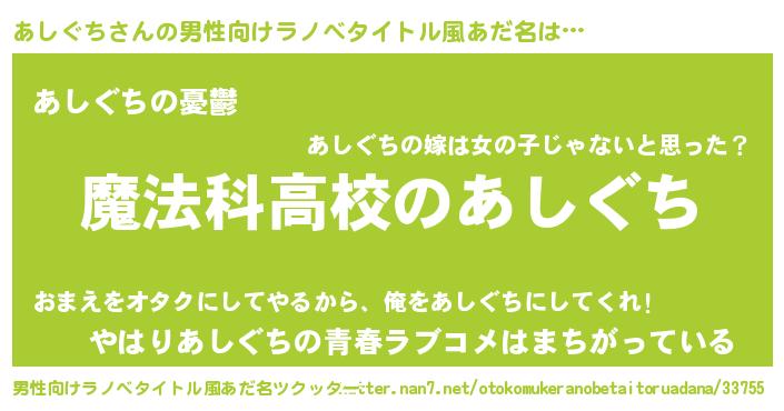 | 女子向けラノベタイトル風あだ名 | 『あしぐちなんてお断りですっ。』 |
