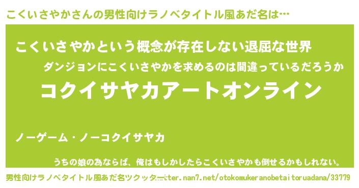 | ヒーロー風カッコイイあだ名 | 『スーパーコクイサヤカ』『黄金騎士コク』 |