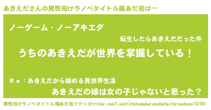 | ピコ太郎風あだ名 | 『アア太郎』『アキ次郎』『アコ十郎』 |
