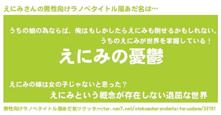 | 女子向けラノベタイトル風あだ名 | 『えにみ姫と円卓の騎士』 |