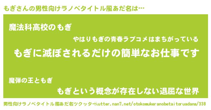 | ヘコむあだ名 | 『もぎ(爆)』『つくし』『もぎを』 |